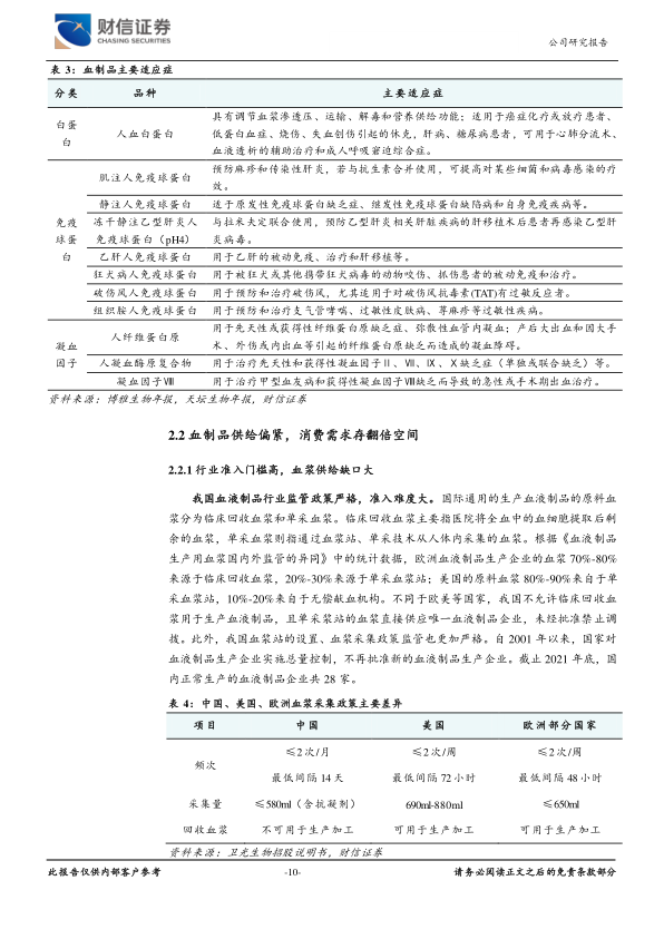 风险提示:新冠疫情风险;浆站申请进展不及预期风险;行业政策风险;商誉减值风险;行业竞争加剧风险等。