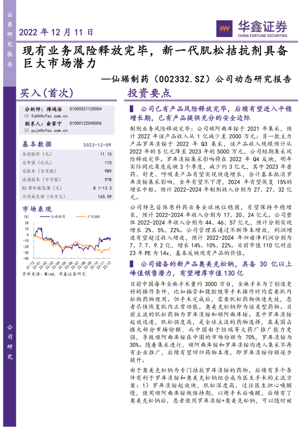 公司动态研究报告:现有业务风险释放完毕,新一代肌松拮抗剂具备巨大市场潜力