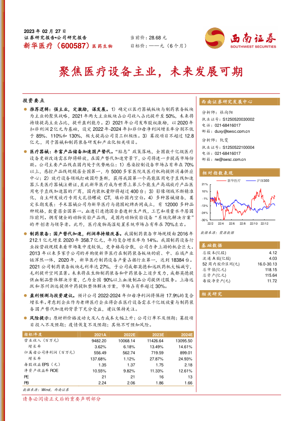 盈利预测与投资建议。预计公司2022-2024年归母净利润将保持17.9%的复合增长率。考虑到企业作为老牌医疗企业将会在医疗设备需求千亿级放量与制药装备国产替代加速的背景下充分受益,建议保持关注。
