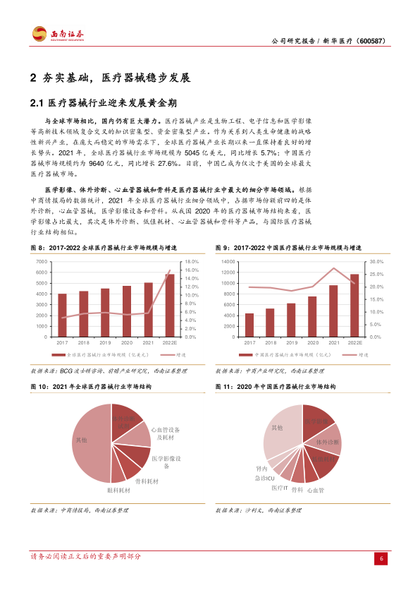医疗器械:丰富产品储备加速国产替代。“贴息”政策落地,全国数千亿级医疗设备更新改造需求即将释放,在国产替代加速背景下,公司将进一步提高市场份额。公司主要产品线在国内处于优势地位:1)感染控制设备市场占有率在70%以上,感控产品线规模居全国第一,为5000多家医院及医疗机构提供消毒供应中心;2)放疗设备领域打破国外垄断,获得我国第一个高能医用电子直线加速器三类医疗器械注册证,至此新华医疗成为世界上第三个能生产高端放疗产品医用电子直线加速器的厂商,国内装机量即将超过400台;3)影像领域不断精准化,自主研发放疗专用大孔径螺旋CT,填补国内空白。4)多种器械储备,奠定长期发展:手术器械公司为新华医疗与德国蛇牌共同成立,有12000多种品种规格,数量居全国第一。血透引进德国全套透析生产线,工艺和质量水平居国际前列。拥有健全的动物实验产品线,是国内动物实验设备“系统化解决方案”的开创者与领导者。此外,医疗废物高温处置系统市场占有率在70%左右。