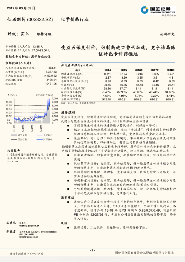 公司整体投资逻辑清晰,即作为甾体激素领域的龙头企业,其制剂业务保持高速增长,原料药业务触底回升,OTC业务恢复增长,且管理层激励机制完善。报告预测公司业绩已出现拐点,2016-2018年EPS将持续增长,并给予“买入”评级。尽管存在医保控费、二次议价、招标降价及原料药价格下跌等风险,但仙琚制药凭借其核心竞争力,有望在医药行业变革中实现持续发展。
