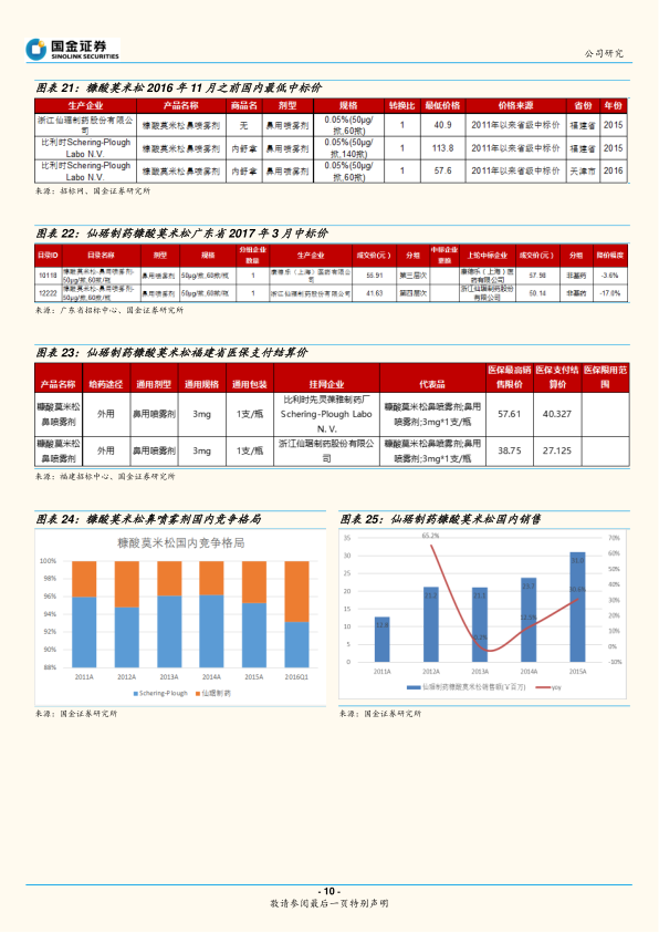 - 最低中标价与价格优势: 截至2016年11月,仙琚的全国最低价为40.9元/瓶。2017年3月广东招标中,仙琚制药中标价由2016年8月的50.14元/瓶下降到41.63元/瓶。