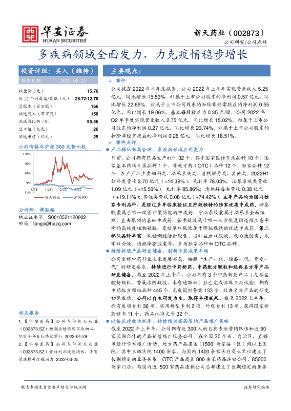 新天药业凭借其在多疾病领域的全面布局、独家专利品种以及持续的研发投入,实现了营收和净利润的稳健增长。