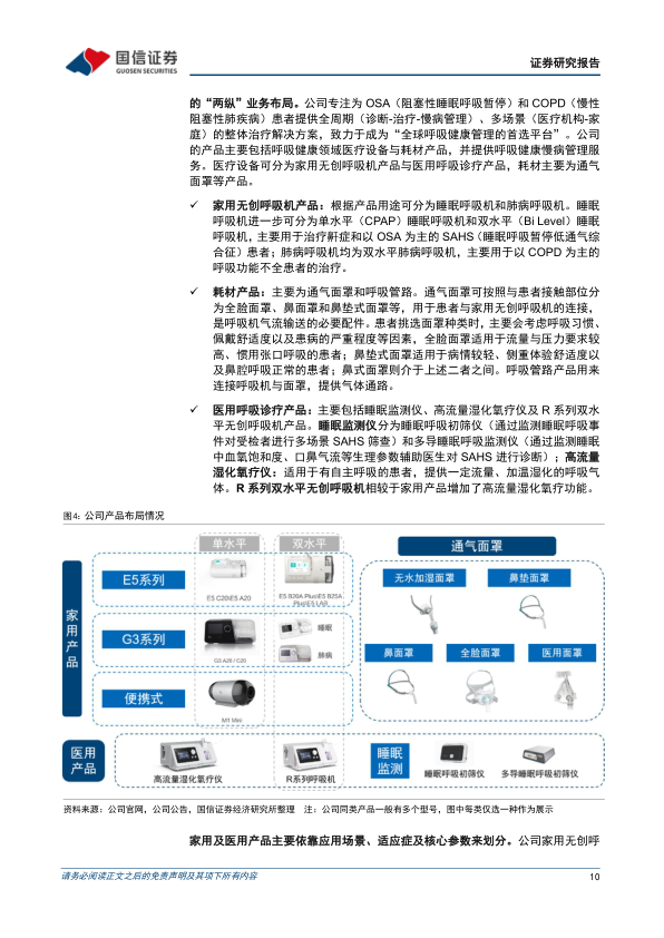 公司为国产家用无创呼吸机龙头,“短期业绩修复+中长期潜在市场空间”构筑公司业绩弹性与韧性。公司长期以来深耕全球家用无创呼吸机市场,在市场准入、产品设计及渠道建设等方面布局深入,是处于行业前沿的国产医疗器械企业。随着美国去库存渐进尾声,公司短期有望迎来业绩强势复苏,中长期有望凭借自身核心竞争优势持续提升在全球市占率。
