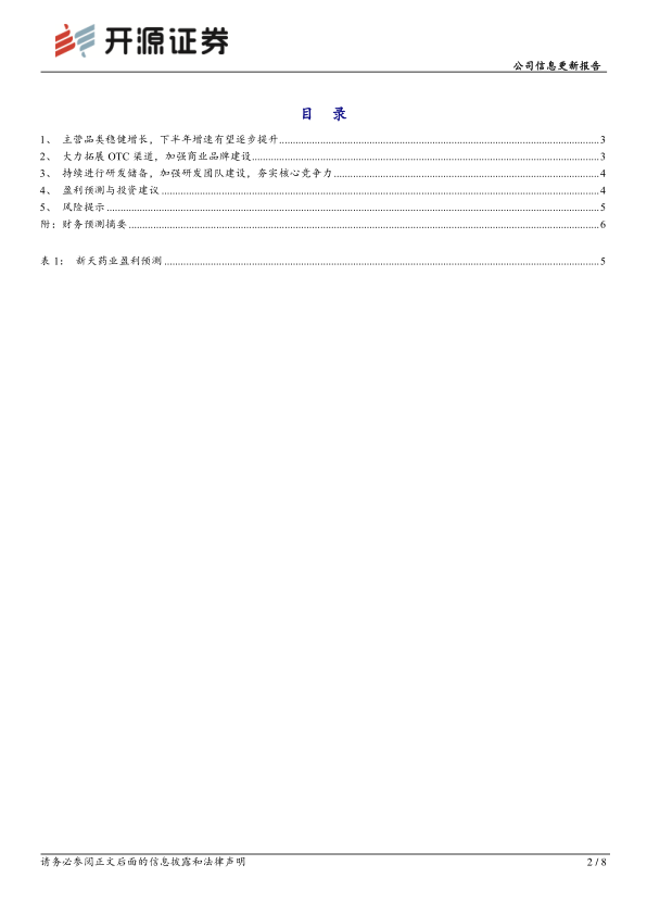 新天药业2022年上半年业绩符合预期,实现营业收入5.25亿元,同比增长15.53%;归母净利润0.57亿元,同比增长22.65%。尽管上半年受到疫情影响,公司仍展现出稳健的增长态势。展望下半年,随着疫情防控措施的优化以及公司OTC渠道的持续拓展和品牌建设的深入推进,预计收入和利润增速将逐步提升。