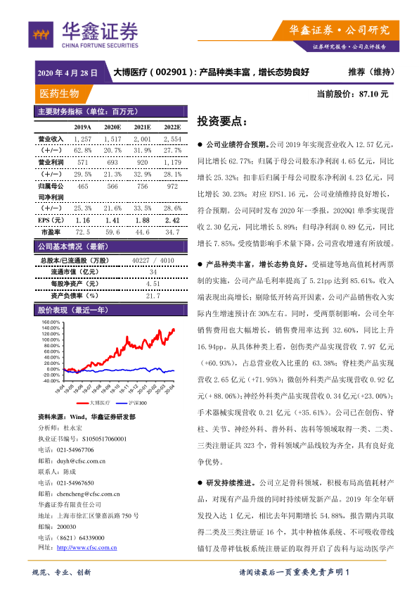 大博医疗在2019年展现出强劲的业绩增长,得益于其丰富的产品组合和“两票制”政策带来的毛利率提升。尽管2020年一季度受疫情影响,增速有所放缓,但公司通过持续的研发投入和在新领域的战略布局,如齿科和运动医学,为未来的可持续发展奠定了坚实基础。分析师基于对公司未来盈利能力的预测,维持了“推荐”评级,并提醒投资者关注产品降价、销售不及预期及研发进度等潜在风险。