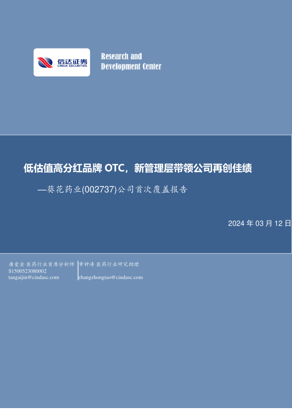 公司首次覆盖报告:低估值高分红品牌OTC,新管理层带领公司再创佳绩