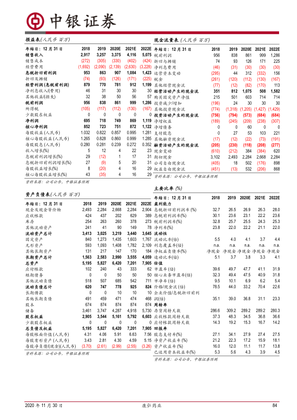 第三季度业绩回复,三大板块均实现同比增长。2020年上半年,新冠疫情造成门诊关停对公司业绩造成不利影响。第三季度门诊基本实现有序复工,公司业绩逐步回复。第三季度公司实现营业收入9.54亿元,同比增长7.2%。第三季度公司中成药、化学药与生物制品板块收入均实现同比增长:中成药板块实现营业收入2.61亿元,同比增长9.15%;化学药板块实现营业收入3.49亿元,同比增长5.79%;生物制品板块实现3.43亿元,同比增长6.62%。