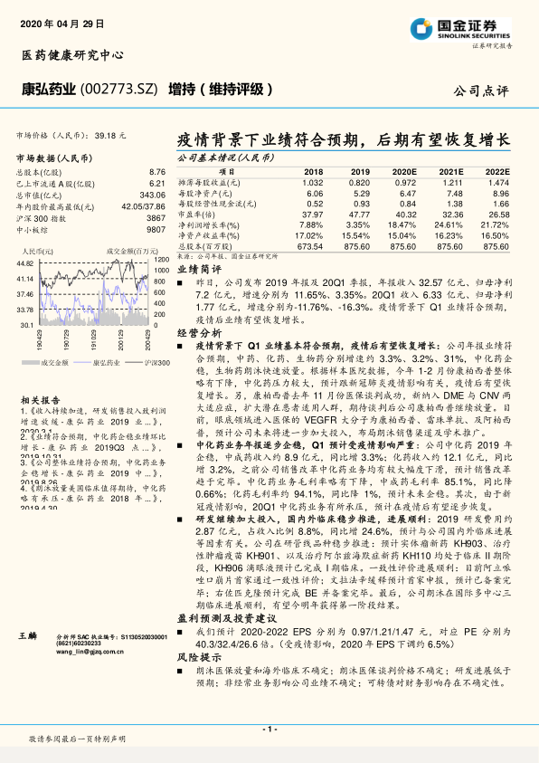 康弘药业在疫情挑战下展现出良好的业绩韧性,并通过生物药“朗沐”的医保扩容和持续的研发投入,为未来的业绩增长奠定了坚实基础。尽管面临市场和研发风险,但公司整体经营状况稳健,增长潜力显著。分析师维持“增持”评级,表明对公司长期发展的信心。