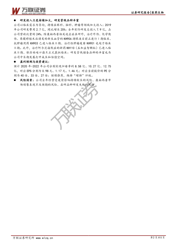 本报告对康弘药业2019年业绩进行了回顾,并对未来发展进行了展望。报告认为,尽管短期内公司业绩受到一定因素的影响,但长期来看,康柏西普的放量、研发投入的加大以及丰富的产品管线将为公司带来持续增长的动力。维持“增持”评级,建议投资者关注。
