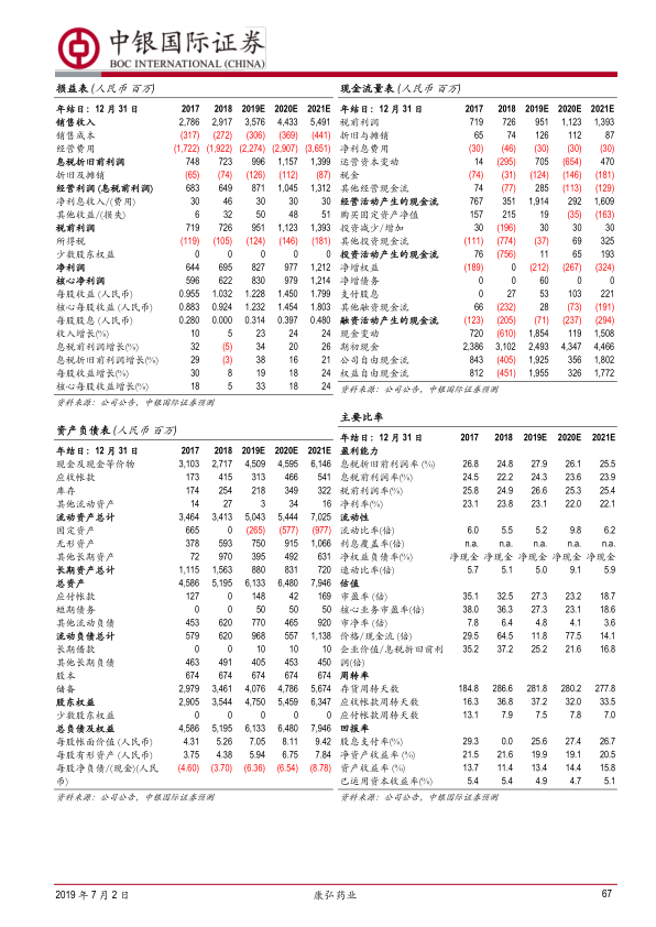 本报告是中银国际证券发布的一份关于康弘药业(002773.SZ)的证券研究报告,发布日期为2019年7月2日。报告给予康弘药业“买入”评级,认为其核心品种朗沐销售额快速增长,传统业务有望止跌企稳。