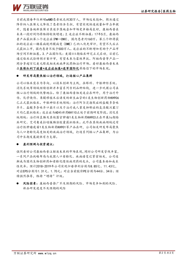 本报告对康弘药业进行了全面的分析,认为公司核心产品康柏西普市场潜力巨大,研发布局与老龄化趋势契合,公司基本面和成长性优异,维持“增持”评级。但同时也提示了康柏西普推广、市场竞争和新品研发等方面的风险。