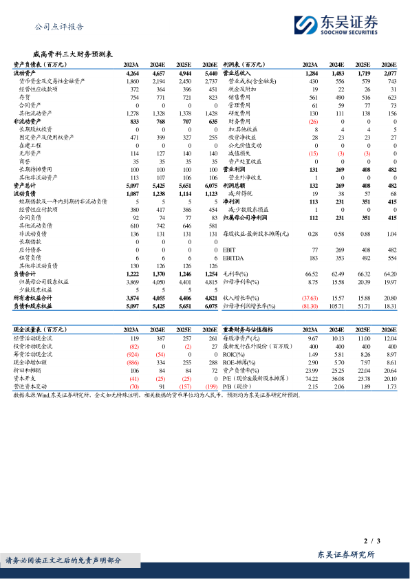 考虑到公司在关节产品续标中的良好表现,以及平台属性和市场份额提升的潜力,东吴证券维持对威高骨科“买入”评级。但投资者也应关注相关风险,如常规业务销售、渠道库存以及反腐政策的影响。