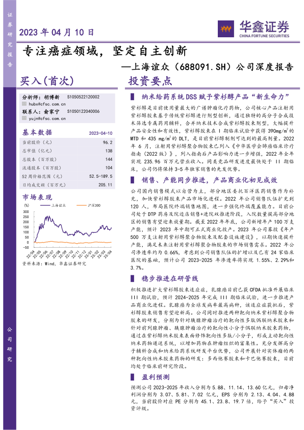 公司正积极推进紫杉醇胶束的商业化进程,通过扩充销售队伍、布局DTP药房及院边店销售与医院进院双推进模式,并同步提升产能以满足日益增长的市场需求。2022年公司营收达到2.36亿元,并预计2023-2025年收入将分别达到5.88亿元、11.14亿元和13.60亿元,归母净利润分别为3.07亿元、5.81亿元和7.02亿元。此外,公司正稳步拓展紫杉醇胶束的适应症范围,如乳腺癌等,并积极布局靶向纳米胶束药物的研发,预示着其在癌症治疗领域拥有广阔的增长潜力和投资价值。