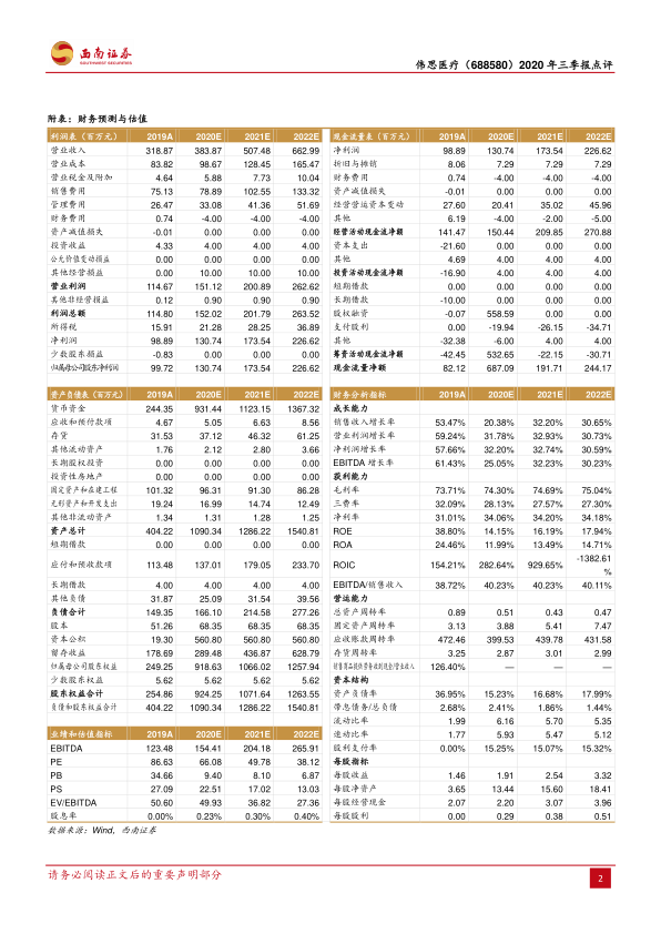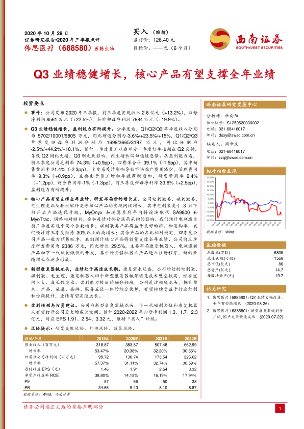 本报告分析了伟思医疗(688580)2020年三季报,核心观点如下: