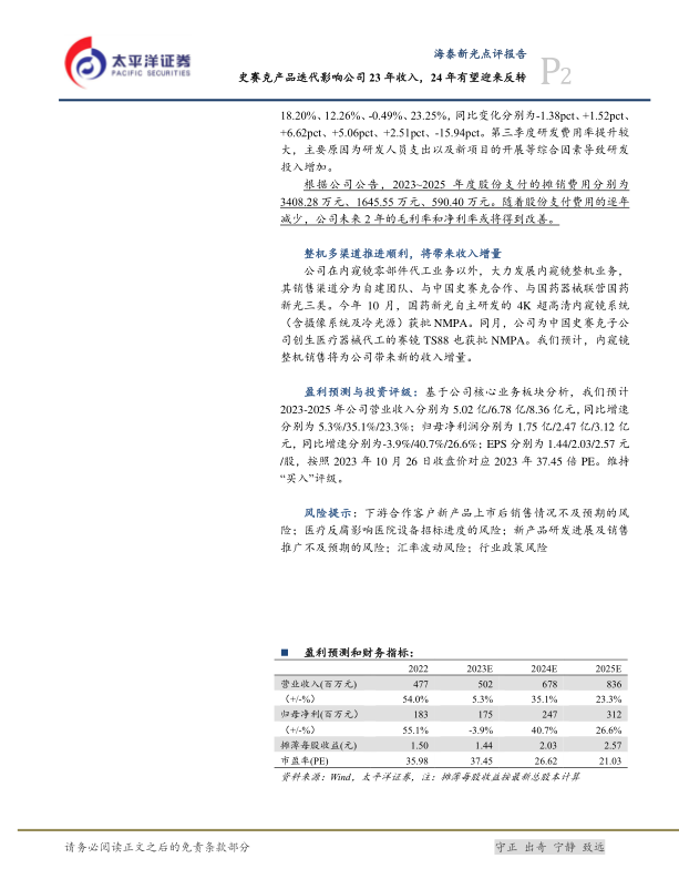 风险提示:下游合作客户新产品上市后销售情况不及预期的风险;医疗反腐影响医院设备招标进度的风险;新产品研发进展及销售推广不及预期的风险;汇率波动风险;行业政策风险