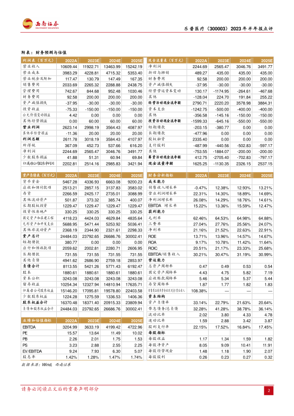 本报告对乐普医疗2023年半年报进行了深度分析,核心观点如下: