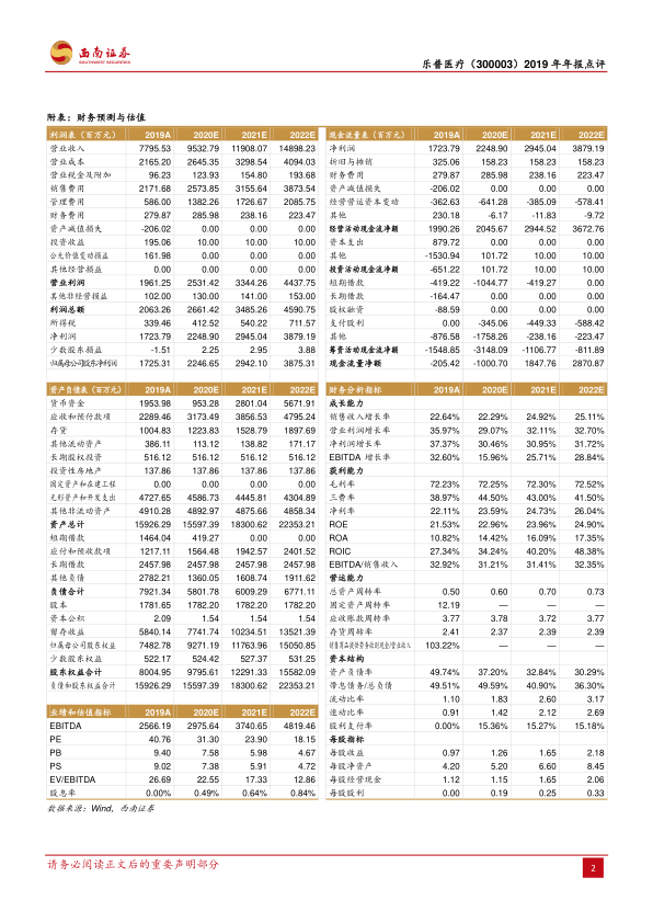 本报告对乐普医疗(300003)2019年年报进行了点评,核心观点如下: