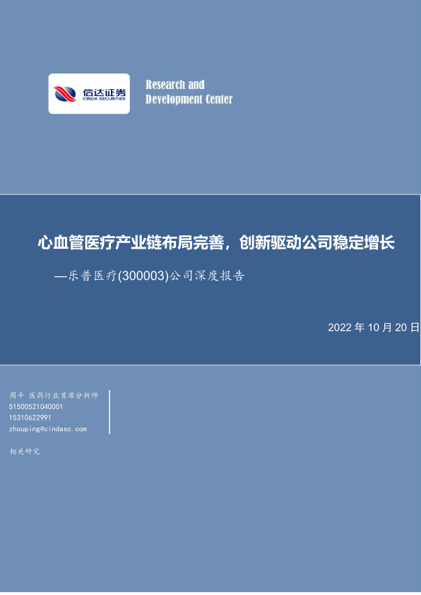 公司深度报告:心血管医疗产业链布局完善,创新驱动公司稳定增长