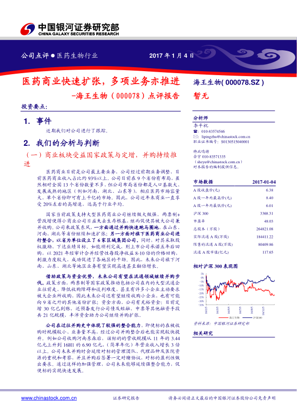 本报告主要分析了海王生物(000078.SZ)的业务发展和市场前景,核心观点如下: