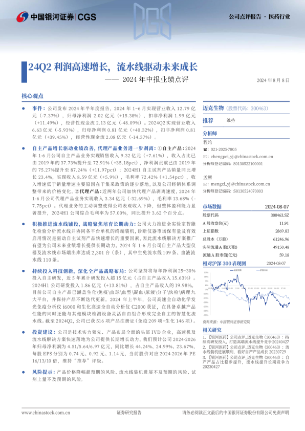 2024年中报业绩点评:24Q2利润高速增长,流水线驱动未来成长