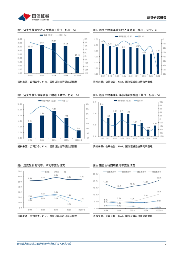 2023Q1-3实现营收21.15亿(-22.2%),归母净利润2.69亿(-55.3%),扣非归母净利润2.75亿(-54.4%)。其中单三季度营收7.34亿(-21.6%),,归母净利润0.94亿(-51.8%),扣非归母净利润0.97亿(-52.4%),主要由于分子产品和代理产品销售下降,前三季度与去年同期相比分子诊断产品收入下降98.7%。同时公司本着谨慎性原则对分子诊断产品相关原料、半成品等存货计提跌价准备5433万,使得利润端下滑比例大于收入端。