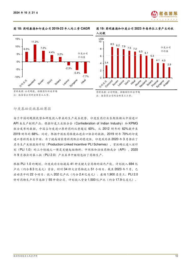 预计海外同行中期内无法承接中国化学药CDMO行业的产能。我们整理了30家位于欧洲、美国和印度的从事API和化学药CDMO业务的公司情况,发现这些公司在收入体量和产能投入上显著落后于药明康德。印度专门从事API和化学药CDMO的公司大多提供大宗和特色原料药,对于创新药领域的涉足相对有限。与药明康德相比,印度相关企业的研发团队规模很小。欧洲的制药工业基础较好,区域内有众多历史悠久的化学药CDMO公司。但欧洲的化学药CDMO企业偏重制剂业务。同时,他们的主要分布在中欧和西欧地区,导致人工成本高于药明康德。