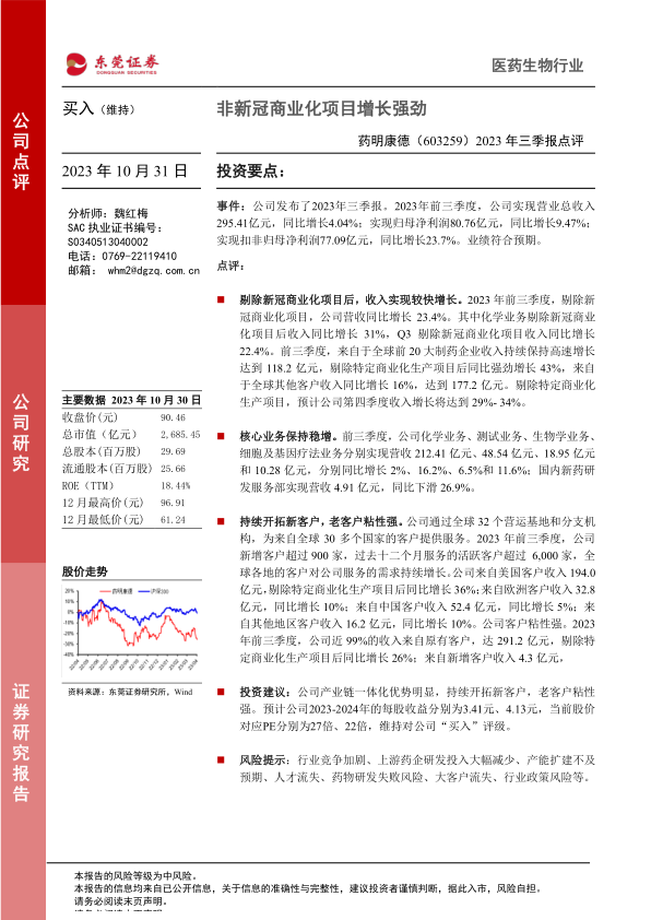 2023年三季报点评:非新冠商业化项目增长强劲