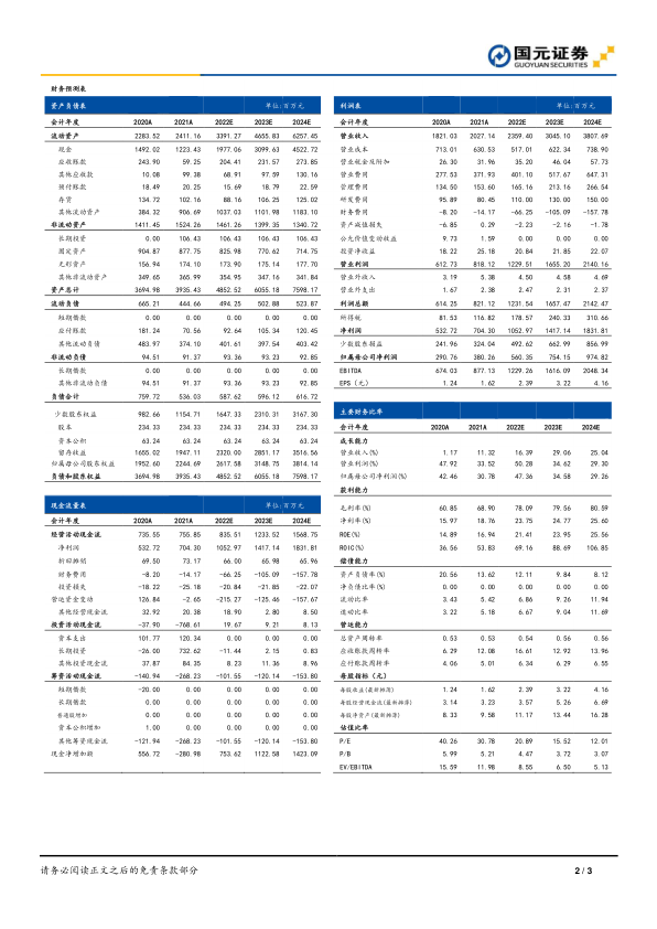 考虑到公司三季报业绩超预期,我们上调公司盈利预测,预计2022-2024年,公司实现营业收入分别为23.59亿元、30.45亿元和38.08亿元,实现归母净利润分别为5.60亿元、7.54亿元和9.75亿元,对应EPS分别为2.39元/股、3.22元/股和4.16元/股,对应PE分别为21倍、16倍和12倍,维持“买入”评级。
