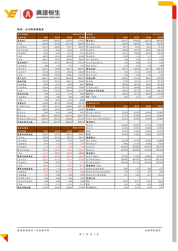 根据公司现有业务的增长情况,分析师测算公司2017-2019年每股收益(EPS)分别为1.27元、1.68元和2.17元,对应市盈率(PE)分别为28倍、21倍和16倍。基于对公司业绩增长的信心,分析师继续维持“强烈推荐”评级,目标价46.4元,预计股价空间为30%。