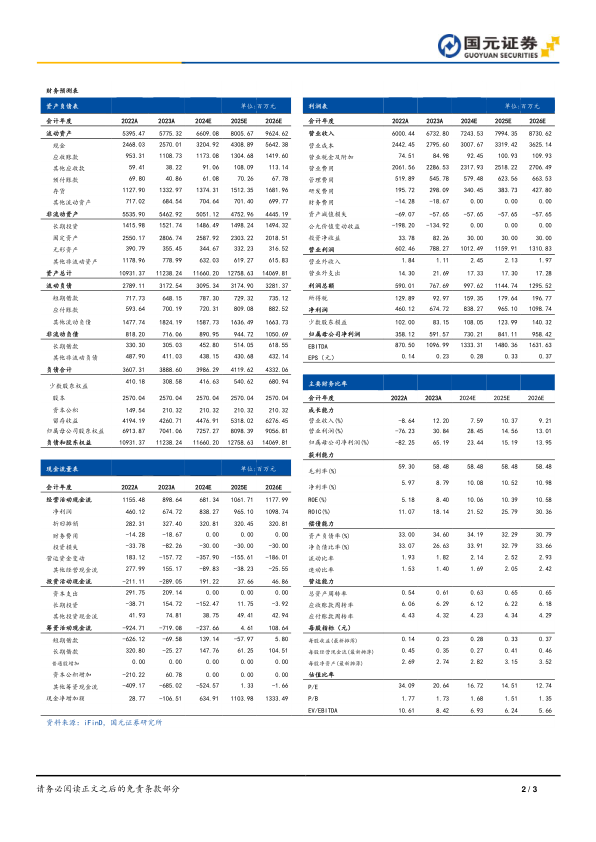 预计2024-2026年,公司实现营业收入分别为72.44亿元、79.94亿元和87.31亿元,实现归母净利润分别为7.30亿元、8.41亿元和9.58亿元,对应EPS分别为0.28元/股、0.33元/股和0.37元/股,对应PE分别为17倍、15倍和13倍,维持“买入”评级。