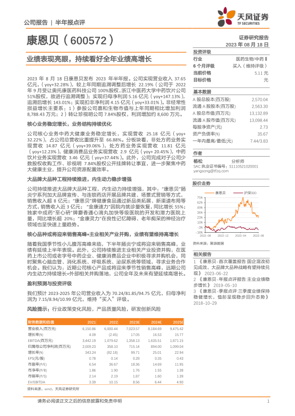 本报告对康恩贝(600572)2023年半年度业绩进行了深入分析,核心观点如下: