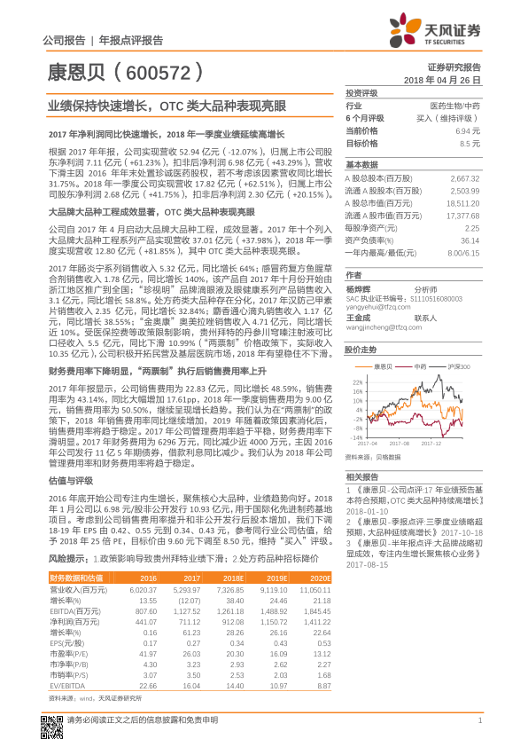 本报告对康恩贝(600572)2017年年报及2018年一季度业绩进行了分析,并维持“买入”评级。