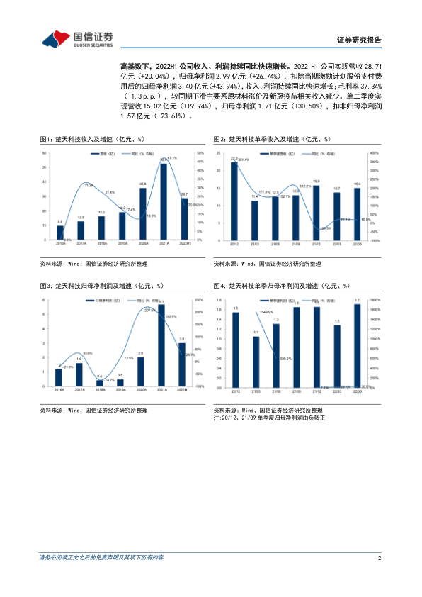 本报告分析了楚天科技2022年上半年的财务业绩,指出公司在高基数下依然保持了收入和利润的快速增长。同时,报告也关注到毛利率的下滑,并解释了其主要原因。