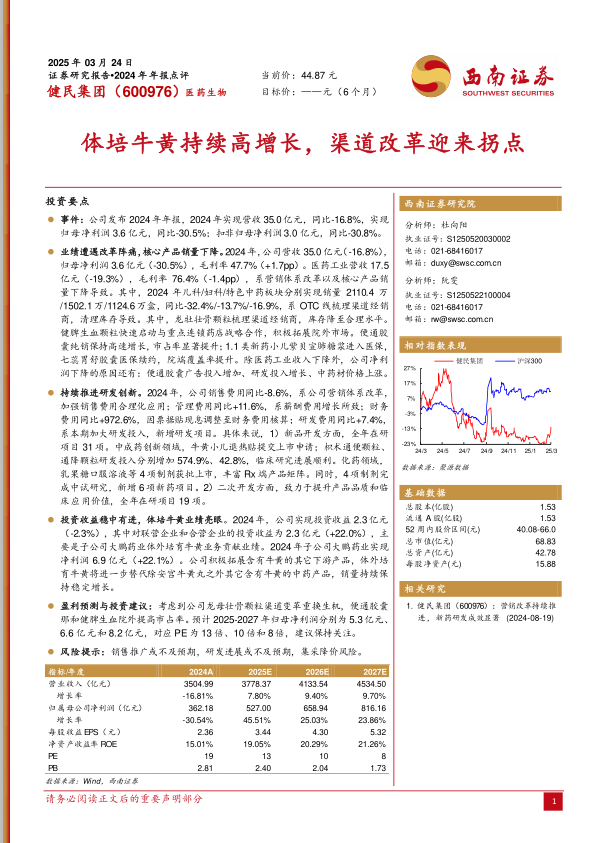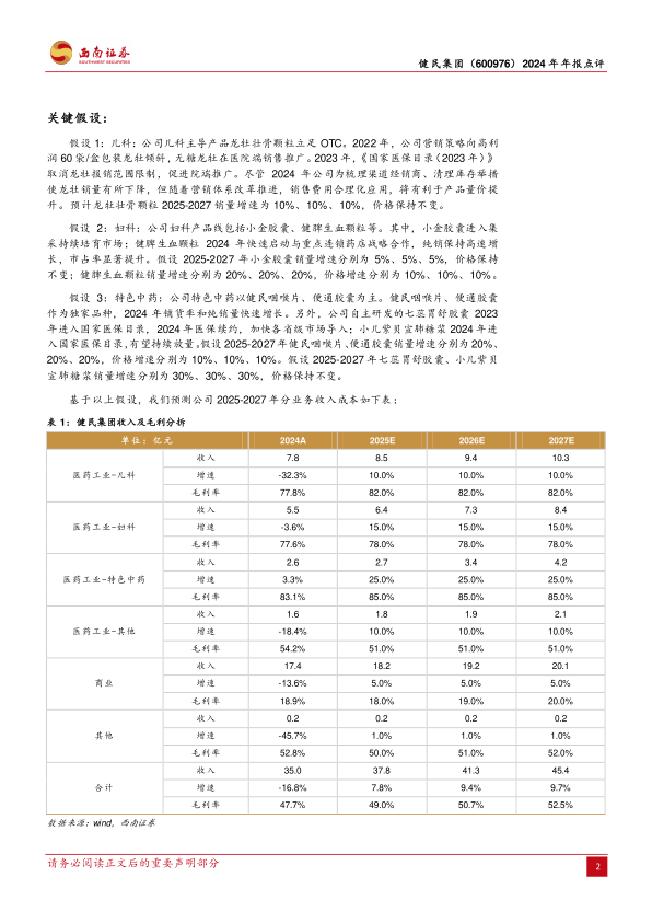 本报告对健民集团(600976)2024年年报进行了深度分析,核心观点如下: