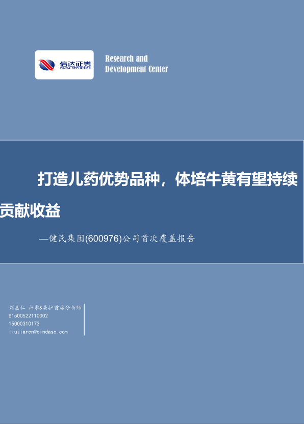 公司首次覆盖报告:打造儿药优势品种,体培牛黄有望持续贡献收益