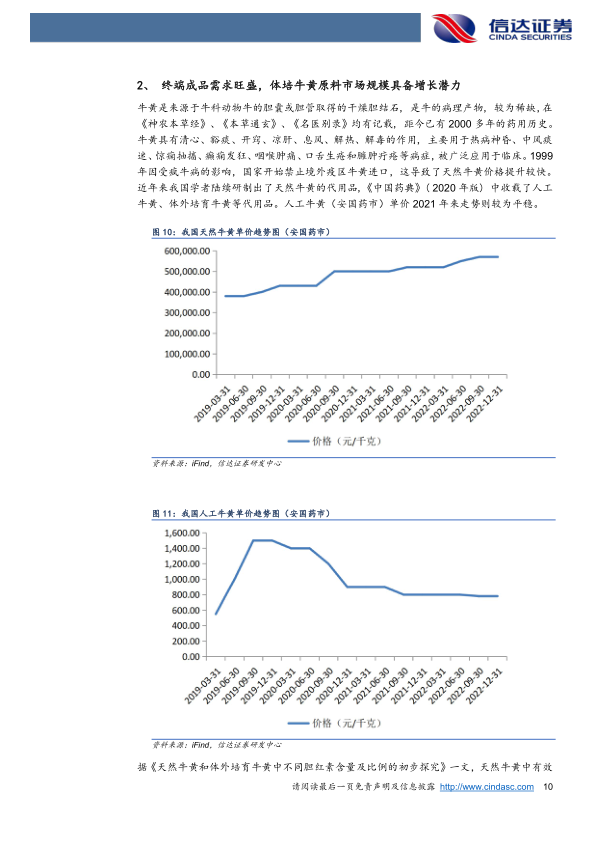 终端成品需求旺盛,体培牛黄原料市场规模具备增长潜力。天然牛黄产量稀缺,体外培育牛黄为天然牛黄的优质代用品,其理化性质、化学成分、内部有效含量与天然牛黄无显著性差异且稳定性较好,更适应于工业化大生产。近年来天然牛黄价格持续提升,终端成品如安牛需求旺盛,为体外培育牛黄原料市场带来机遇,作为体外培育牛黄的独家供应商,健民大鹏给健民集团带来的净利润贡献占比在2018-2021年平均维持在50%以上,我们认为健民大鹏或有望为公司持续提供较强投资收益。