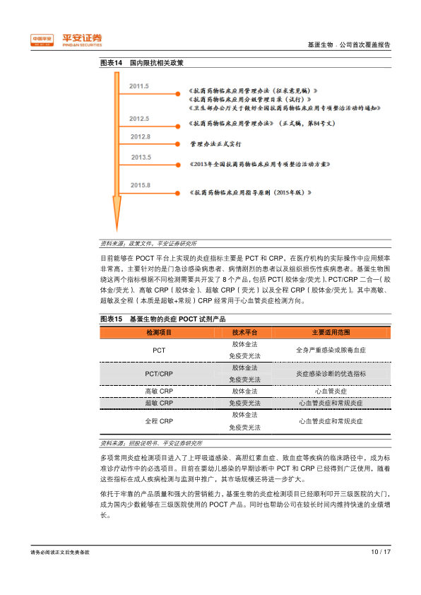 基蛋生物专注 POCT 起家,准确把握心血管、炎症等快速发展领域,成长为国内的 POCT 龙头企业。公司紧抓产品质量与销售渠道两大核心,推陈出新确保持续竞争力。在做强做大 POCT 产品的同时,公司向生化、发光布局,进军“大检验”领域,为长进发展打开空间。预计 2017-2019 年 EPS 为 1.51、1.91、2.37 元,首次覆盖,给予“推荐”评级。