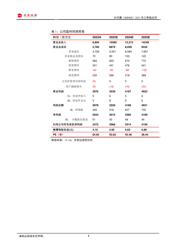 维持买入评级。预计公司2023-2024年EPS分别为4.92元和5.82元,对应PE分别为54倍和45倍。公司具有悠久的历史和深厚的文化底蕴,品牌优势突出,持续做大做强安宫牛黄丸、复方片仔癀含片和复方片仔癀软膏等产品,积极培育业绩新的增长点。维持对公司的“买入”评级。