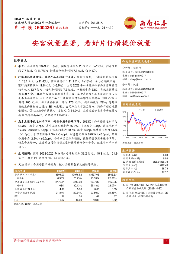 本报告分析了片仔癀(600436)2023年一季度的业绩表现,并对其未来发展进行了展望。核心观点如下:
