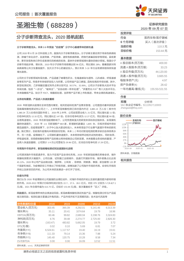 展望未来,随着“后疫情”时代分子中心基建的推进和新产品的持续推出,公司常规业务有望实现快速放量,进一步巩固其市场地位。尽管存在新冠疫情业绩波动、产品注册延续、检测仪器外购、市场开拓不及预期以及技术迭代等风险,但报告认为公司估值仍有提升空间,首次覆盖给予“买入”评级,目标价153.44元/股,预示其长期增长潜力。