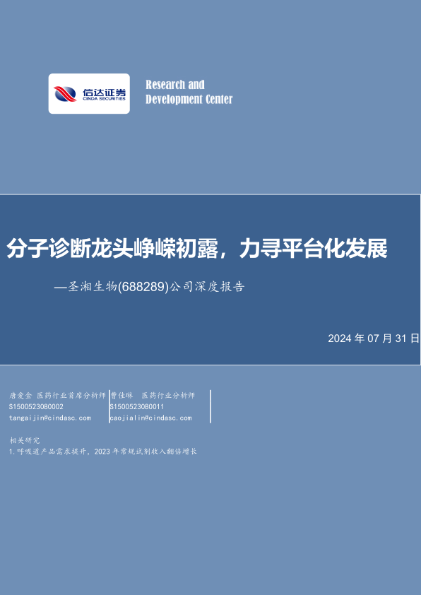 公司深度报告:分子诊断龙头峥嵘初露,力寻平台化发展