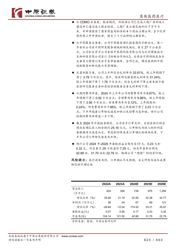 尽管综合毛利率略有下滑,但公司通过加强费用控制,使得期间费用率整体下降。同时,公司拥有高达25.16亿元的在手订单,为未来业绩增长提供了坚实保障。随着CDMO业务的推进和中药服务能力的增强,公司长期成长潜力可期,维持“增持”投资评级。