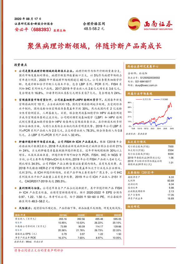 安必平作为一家聚焦病理诊断领域的高新技术企业,凭借其在细胞学诊断、免疫诊断和分子诊断三大技术平台上的全面产品线(LBP、PCR、FISH、IHC系列),已成为国内病理诊断领域产品线最齐全、种类最丰富的企业之一。公司在宫颈癌筛查市场,通过液基细胞学(LBP)和HPV检测的联合筛查策略,有效把握了国内适龄女性筛查需求巨大但覆盖率低的巨大市场机遇。同时,在肿瘤伴随诊断市场,公司的FISH和IHC产品线展现出高成长性,尤其在乳腺癌HER-2检测等细分领域具有显著的市场渗透率和竞争优势,受益于精准医疗政策的推动。