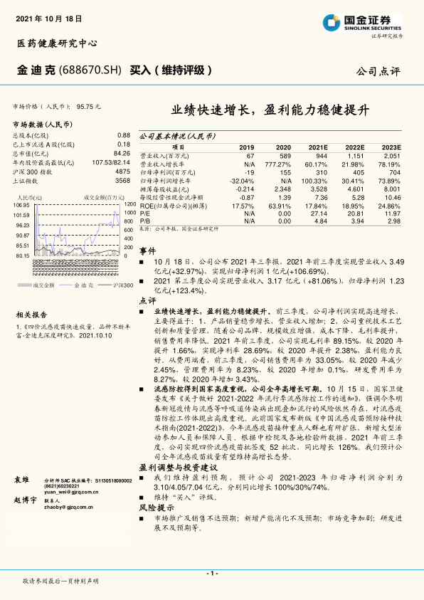 金迪克公司凭借其在产品销量、技术创新和成本控制方面的优势,实现了业绩的快速增长和盈利能力的稳健提升。国家对流感防控的政策支持和市场需求的扩大,为公司流感疫苗业务提供了强劲的增长动力。分析师基于对公司未来盈利能力的积极预测,维持了“买入”评级,但同时提示了市场推广、产能消化、市场竞争和研发进展等方面的潜在风险。