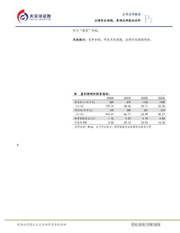 风险提示:竞争加剧,研发不及预期,业绩不及预期风险。