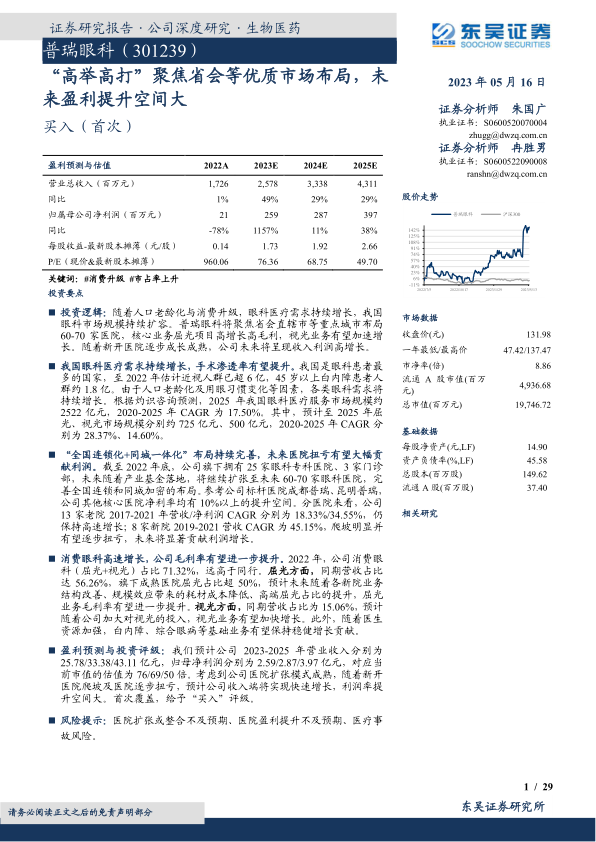 本报告对普瑞眼科(301239)进行了深度研究,核心观点如下: