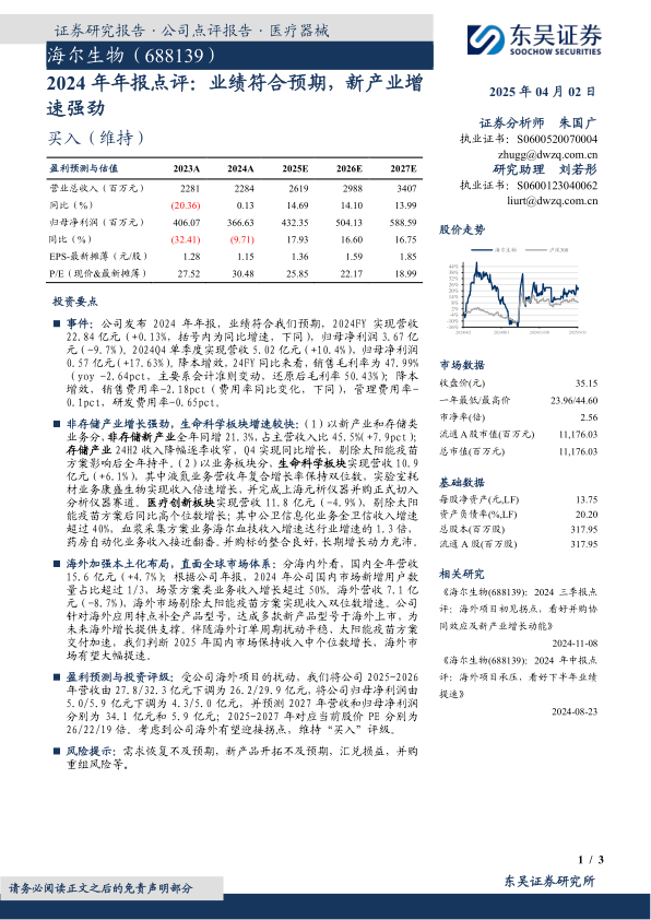海尔生物(688139)
