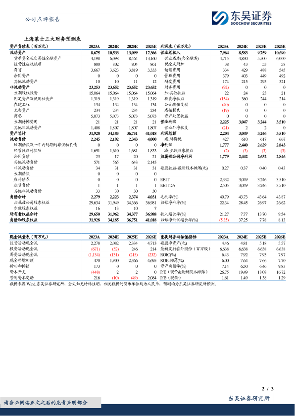 维持2024-2025年归母净利润预测24.4/26.3亿元,预计2026年归母净利润28.5亿元。当前市值对应2024-2026年PE为19/18/17倍,维持“买入”评级。