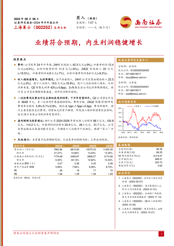 本报告对上海莱士(002252)2024年半年报进行了深度分析,核心观点如下: